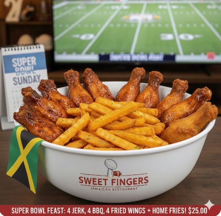 #SuperBowlSunday #SweetFingers #JamaicanFood #WingSpecial #GameDayGrub
